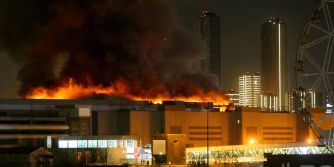 وقالت اقتحم أشخاص يرتدون ملابس مموهة، 3 منهم على الأقل، الطابق الأرضي من قاعة « كروكوس سيتي »، وفتحوا النار من أسلحة آلية بعد ذلك